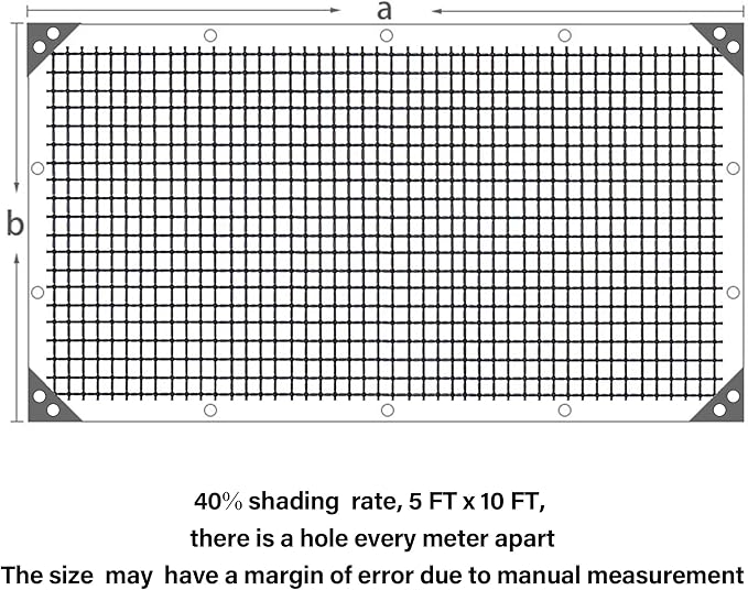 • Durability & Long-Lasting Material: Crafted from high-quality black polyethylene, this 5x10 FT shade netting for garden is tear-resistant and designed for long-term outdoor use. It withstands harsh weather conditions, including sun, wind, and rain, ensuring reliable shading for your farm, garden, or patio.