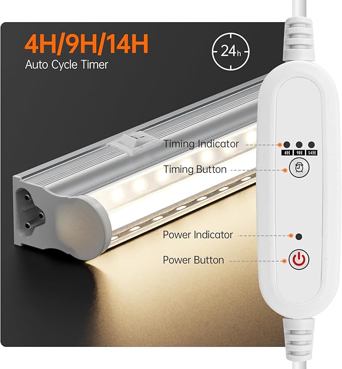 • Dual Power Cords for Plant Growth Lights - Simplify your plant care with our dual power cord system! It includes a standard switch cord for your own smart controller (not included) and a timer cord that allows you to schedule grow lights to automatically turn on and off at 4, 9, or 14-hour intervals. This ensures your plants receive consistent care, even when you’re busy or away, eliminating the stress of manual timing. Enjoy worry-free plant maintenance and optimal growth conditions