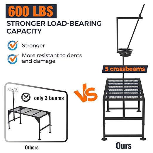 • 600LBs Sturdy Goat Stand: Two additional load-bearing beams have been added In order to reinforce the expanded metal and to support up to 600LBs for adult sheep; The stable triangular frame design makes this livestock stand very sturdy and stable