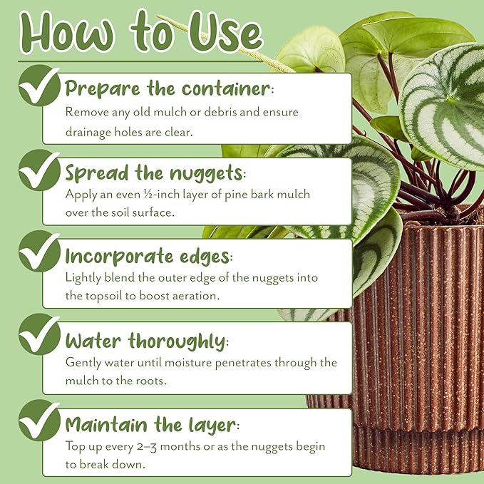 100% Natural Pine Bark Mulch Nuggets (12 Quarts), Small Chips for Indoor/Outdoor Container Gardening, Ideal for Soil Supplement, Houseplant Topper, and Terrariums