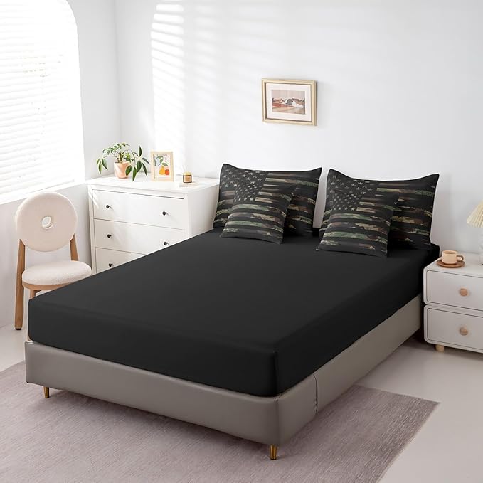 Feelyou American Flag Bedding Bed Set Set Full Size Green Brown Camouflage 7 Pieces Bedding Set, Boys Girls Decor Camo Stripes All Season,Bed in a Bag with Comforter, Sheets, Pillowcases Abstract