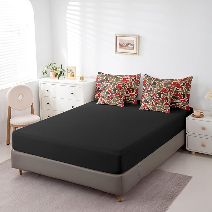 Feelyou Duck Hunter Red Camouflage Hunting 7 Pieces Bedding Set, Twin Size Black Brown All Season,Bed in a Bag with Comforter, Sheets, Pillowcases for Boys Camo Army Bed Set Breathable Wild Room Decor