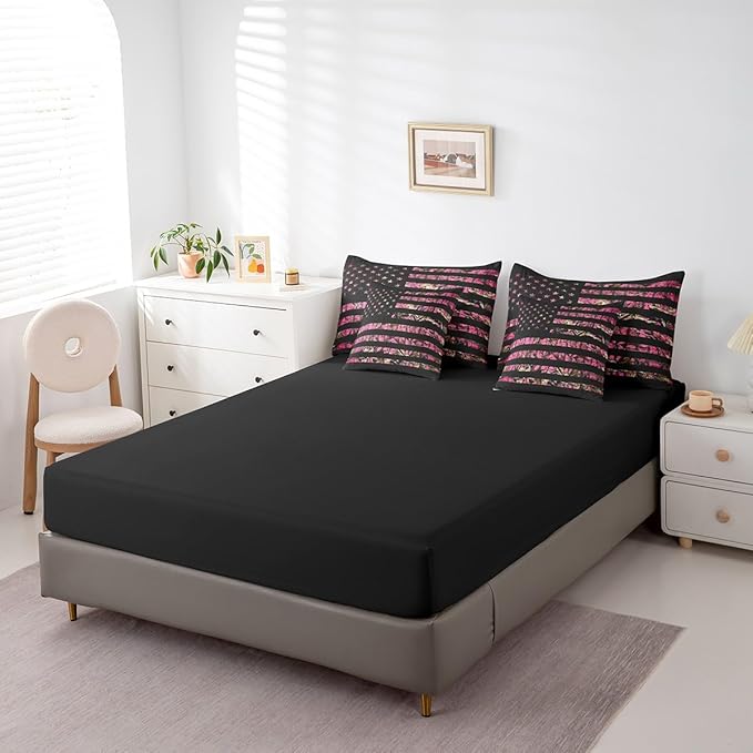 Feelyou American Flag 7 Pieces Bedding Set, Twin Size Hot Pink Camouflage All Season,Bed in a Bag with Comforter, Sheets, Pillowcases Branch Hunting Bed Set Breathable Camouflage Hunter Room Decor