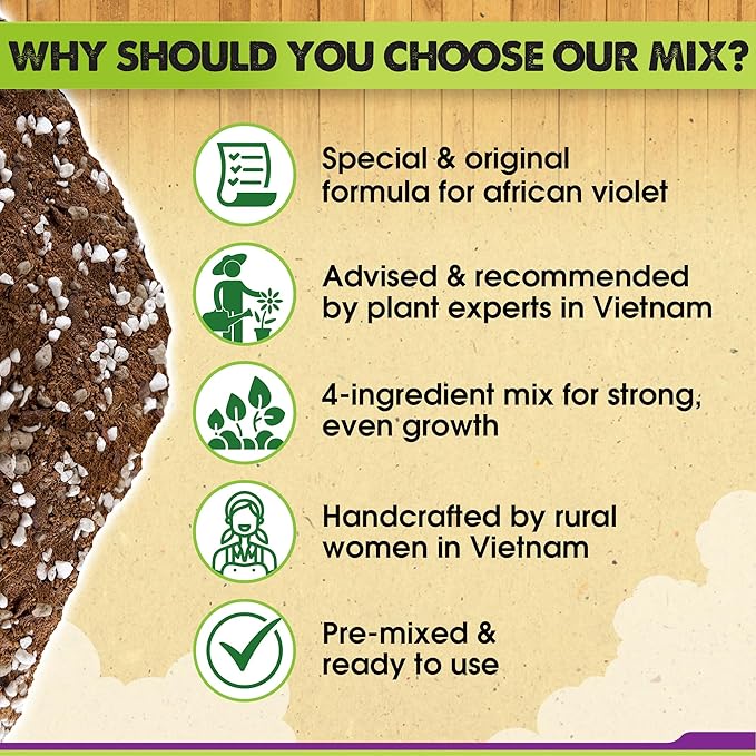 • 🌸 Hand-Crafted & Ready-to-Use: Meticulously mixed for consistent quality, our pre-mixed african violet potting mix saves you time and effort, providing an optimal growing medium for your African violets from the very start.