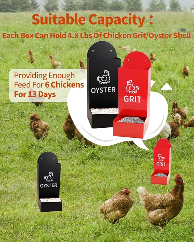 • Appropriate Capacity for Convenience: This chicken feeder and chicken treat dispenser are designed to hold enough chicken grit and oyster shells for chickens to feed 6 chickens for up to 13 days, making it an ideal solution for reducing daily feeding efforts.Patent Pending