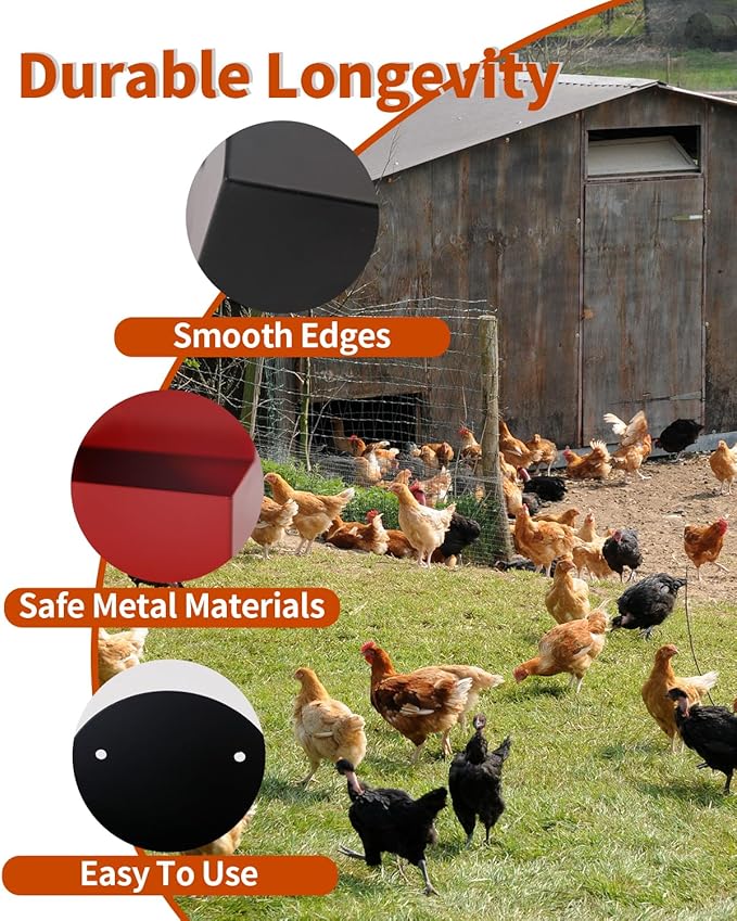 • Durable Metal Construction: Crafted from premium metal, this automatic chicken feeder is built to last, providing a safe and reliable option for your chicken coop accessories.