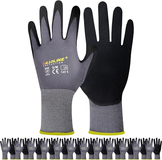 • Multipurpose Machinery Glove: Gasoline safety work gloves are ideal for light construction work, machine work, plumbing, gardening, warehouse packaging handling and more.
