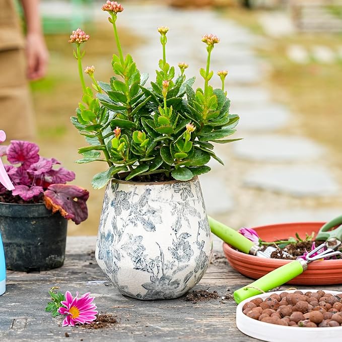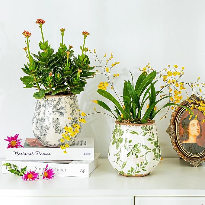 • Vintage Design: These ceramic flower pots feature ice crackle pattern and distressed craftsmanship with exquisite floral designs,that can perfectly match any decor style.
