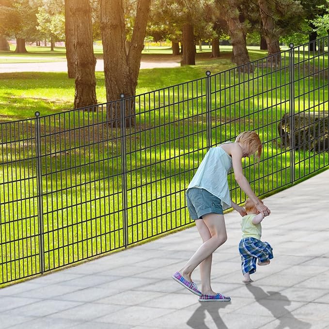 • Customizable for Any Space: Our no dig iron fence are designed to adapt to your unique garden needs. Connect multiple panels to create various shapes and sizes that fit your garden's layout, or use them as an animal barrier, such as a dog fence outdoor for yard, or as decorative borders to add versatility.