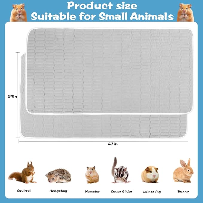 • Good Adaptability: Each washable Guinea pig bedding set contains 2 Guinea pig pee pads, each reusable Guinea pig mat is 47 inches long x 24 inches wide, which is very suitable for small pets. The Guinea pig liner can effectively cover the bottom of the cage to ensure that your small pet has a clean and comfortable living space