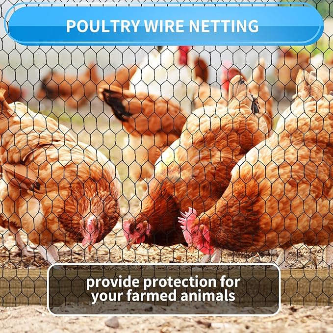 • » » Durable Material : Our black hexagonal wire mesh roll is made with black vinyl coated fence wire, specially treated and hot-dip galvanized, with excellent weather resistance and corrosion resistance. Double twist braid keep it sturdy,more durable than nylon or plastic poultry mesh netting.
