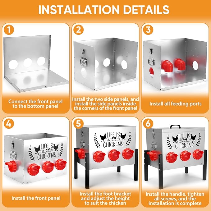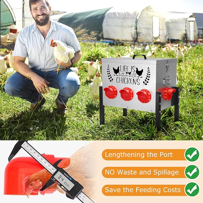• 8 Feeding Ports: Eight convenient feeding ports allow multiple chickens to eat at once, reducing competition and keeping everyone fed.