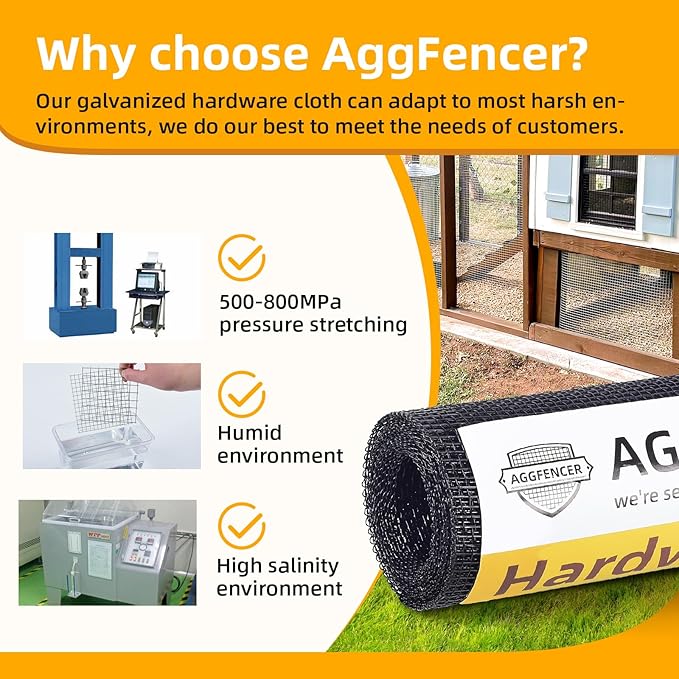 • 【Multipurpose】Our hardware cloth is suitable for chicken coop fences or other poultry fences, rabbit/cat/dog fences, backyard snake and rat protection fences, garden flower beds, orchard tree protection boards, soil screens, balcony protection, gutters, eaves, gutter guardrails, home decoration works, handicrafts making, etc.