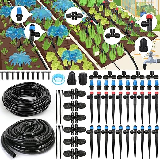 • [Easy Installation] - Simple installation without digging or plumbing skills. Easy installation by using a manual with pictures. Automatic irrigation system very suitable for garden, lawn, greenhouse, patios, flower bed, hanging basket and vegetables etc.