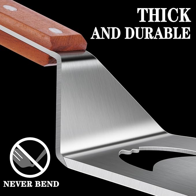 • 【Heavy Duty Stainless Steel】Apart from the wooden handles, our spatula are made of heavy duty stainless steel. The thickness and toughness of the scraper are far superior to similar products, ensuring that it is not easy to bend, absolutely thick and durable, and avoiding the embarrassment of giving inferior gifts to others
