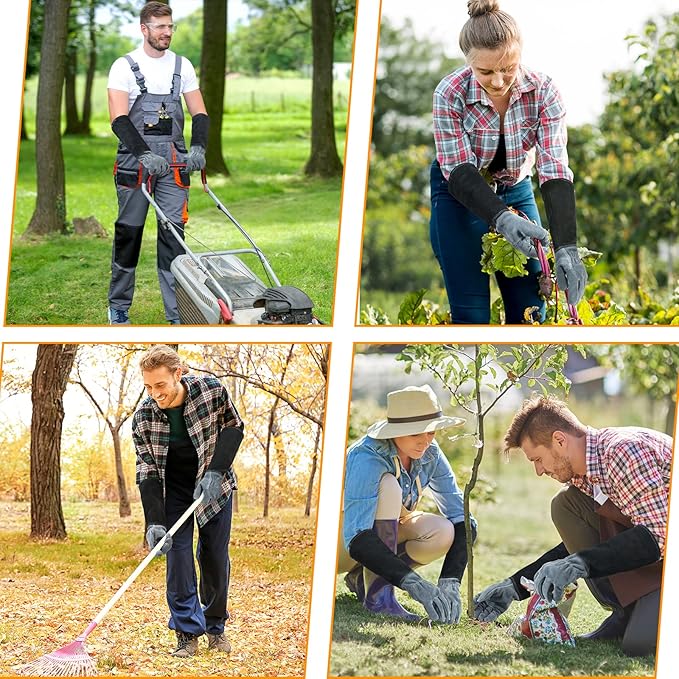 • Forearm Protection & Snug Fit: Feature cowhide leather long sleeves that extend up to forearms that protect them from cuts and scratches, keeping your hands and forearms safe and comfortable. Elastic wrist closure offers a snug and comfortable fit to keep the gloves securely on your hands. Perfect for tasks that require reaching into dense foliage or handling thorny plants