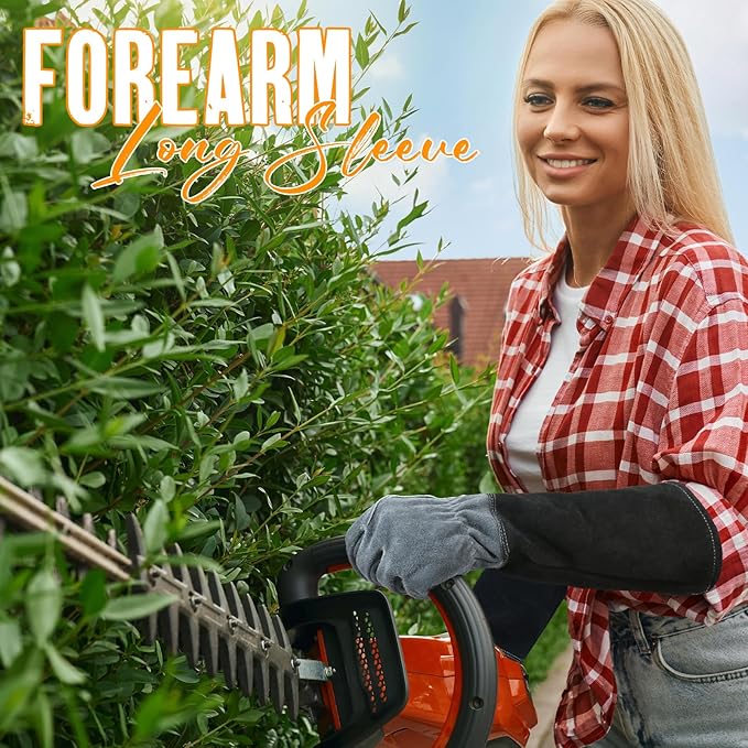 • Forearm Protection & Snug Fit: Feature cowhide leather long sleeves that extend up to forearms that protect them from cuts and scratches, keeping your hands and forearms safe and comfortable. Elastic wrist closure offers a snug and comfortable fit to keep the gloves securely on your hands. Perfect for tasks that require reaching into dense foliage or handling thorny plants