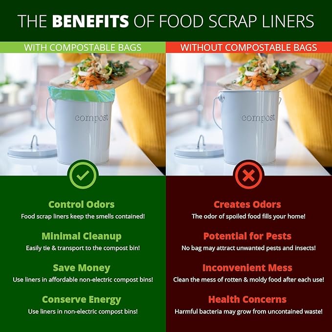 • 【Convenient and Durable 100% Compostable Garbage Bag】In a standard compost pile, it can degrade into humus, carbon dioxide, and water within 180 days. Clean compostable bags are not only beneficial to the earth, but also better bags