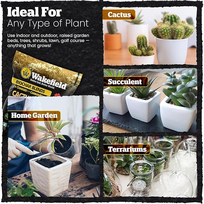 • Professional Growth Support: Designed for gardener enthusiasts and horticulture experts alike, Wakefield Biochar succulent soil incorporates enhances oxygen circulation in the root zone. This advanced formula improves nutrient absorption, prevents compaction, and maintains consistent soil structure over time. Use it as potting soil for succulents, cactus mix, or in combination with citrus potting soil to cultivate robust, resilient plants with minimal effort and maximum aesthetic appeal.