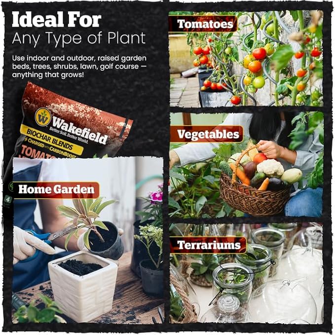 • Engineered for Superior Garden Performance: Wakefield’s premium potting soil with biochar, for outdoor plants with Humic acid, and our proprietary CarbonBoost technology, delivering optimal conditions for vibrant, sustained growth. Ideal for everything from raised beds to patio containers, this advanced formula supports healthy root systems whether you're cultivating juicy tomatoes or leafy herbs.