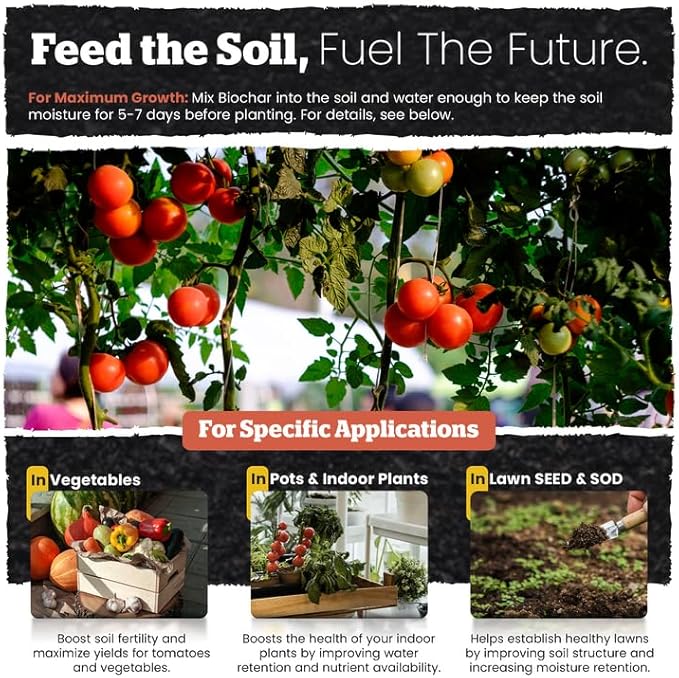 • Enhanced Root Health and Nutrient Absorption: Formulated as a powerful soil amendment and effective soil conditioner, this advanced biochar blend supports healthy microbial ecosystems for optimized nutrient uptake and improved aeration. Whether you're cultivating hardy vegetables or delicate herbs, it strengthens root development and enhances long-term fertility. Perfect for gardeners looking to elevate top soil for garden quality or enrich topsoil for vegetable garden beds.