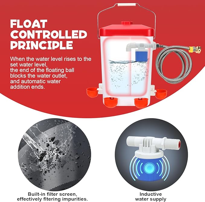 • 3-GALLON AUTOMATIC CHICKEN WATERER - GIFANK Chicken Waterer has four chicken waterer nipples, which release water automatically when triggered by the chicken, ensuring fresh, clean water for your poultry every day. A high-quality water nipples is less likely to leak and can keep the water source cleaner than a water bowl.