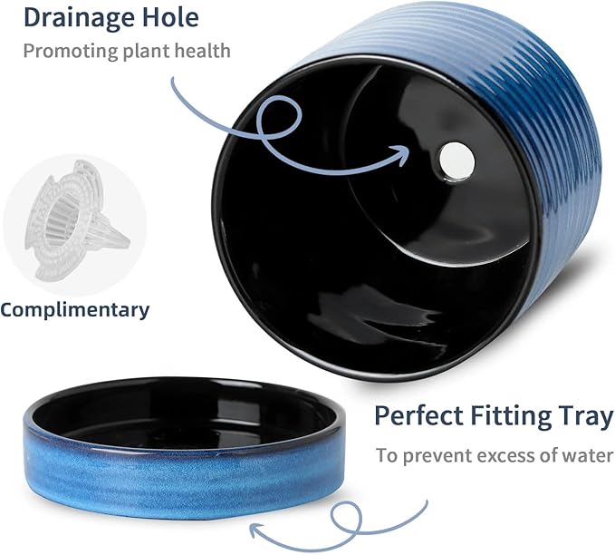 • Effortless Plant Care with Included Saucer: Featuring a drainage a matching saucer and hole, this pot ensures proper water management and prevents spills. Its practical design makes plant care simple and mess-free, even for beginners