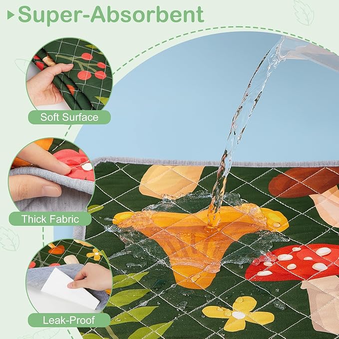 Bienbee Guinea Pig Bedding, 2 Pack 47" x 24" Reusable Guinea Pig Cage Liner Waterproof and Absorbent Small Animal Bedding Washable Guinea Pig Pee Pads for Small Pet Hamster Rabbit Squirrel, Mushroom
