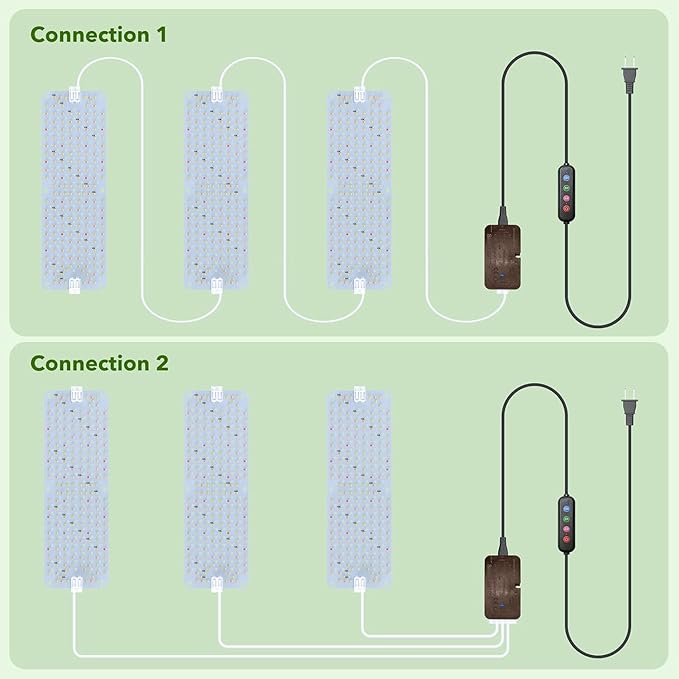 • [Modular LED Grow Panel with Daisy Chain Design] – This linkable grow light panel offers a professional solution for both hydroponic and green house. Easily connect up to 10 panels in series or parallel using the included 8.2ft power cord and 3.28ft link wires. Ideal for small to big indoor setups—whether a 3x3 or 4x4 grow tent, shelf, or commercial greenhouse.