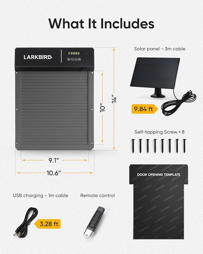 • 24/7 Reliability: Crafted from high-strength, UV-resistant material, this chicken door handles blazing sun, rain, snow, and extreme temperatures (-4°F to 140°F). With a 5000mAh large battery and solar panel, your chickens will be safe around the clock