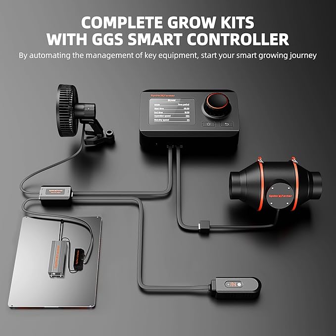 • Smart Environmental Controller: It integrates with various monitoring devices, including temp/humidity/light sensors, and is managed via the Spider Farmer app or manually operated. You can easily customize the light with 0%-100% dimming, grow cycles timer on/off schedule, adjust inline fan speed control over airflow, clip fan running speed & oscillating head angle. Ensures your plants thrive under optimal conditions.