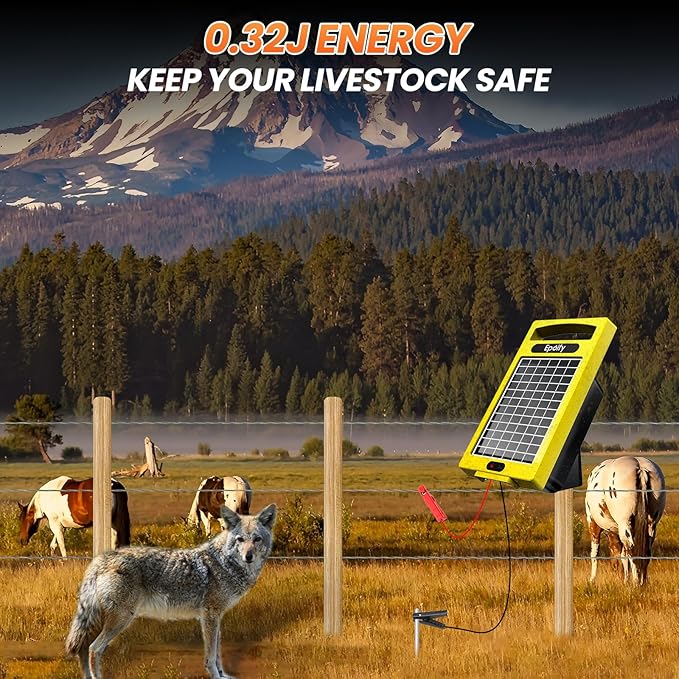 • EFFICIENT ENERGY OUTPUT: With an output of 0.32 Joules, the solar fence charger delivers robust energy, which is essential for effectively deterring wildlife-raccoons, foxes & stray dogs, while keeping your livestock, pets & poultry safe in and predators out