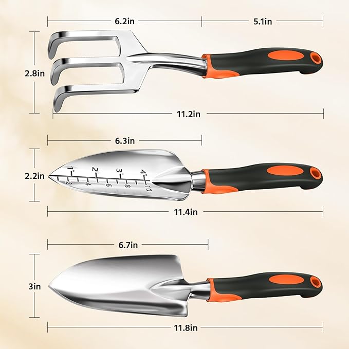 • 【All-in-One Gardening Kit】This 3-piece set includes a trowel, transplanter, and cultivator, providing all the tools you need for planting, digging, and soil cultivation. Enjoy exceptional value and versatility solution that makes your gardening more enjoyable, and more efficient.