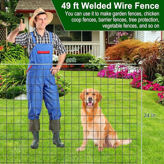 • Durable and Long-lasting Construction: This wire fence rolls 24-inch by 49-foot welded wire fence is made from heavy-duty galvanized wire, ensuring long-lasting durability. The black vinyl coating provides additional protection against rust and corrosion, making it perfect for outdoor use in various weather conditions.