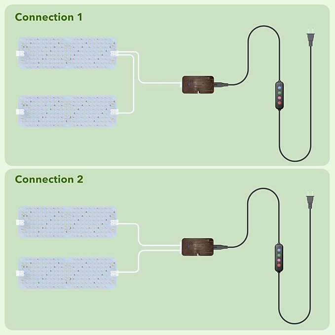 • [Modular LED Grow Panel with Daisy Chain Design] – This linkable grow light panel offers a professional solution for both hydroponic and green house. Easily connect up to 10 panels in series or parallel using the included 8.2ft power cord and 3.28ft link wires. Ideal for small to big indoor setups—whether a 3x3 or 4x4 grow tent, shelf, or commercial greenhouse.