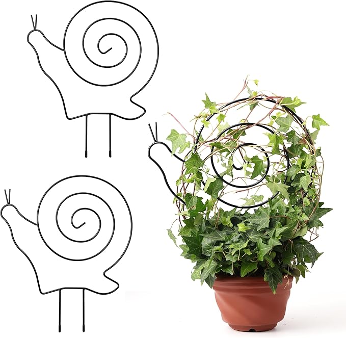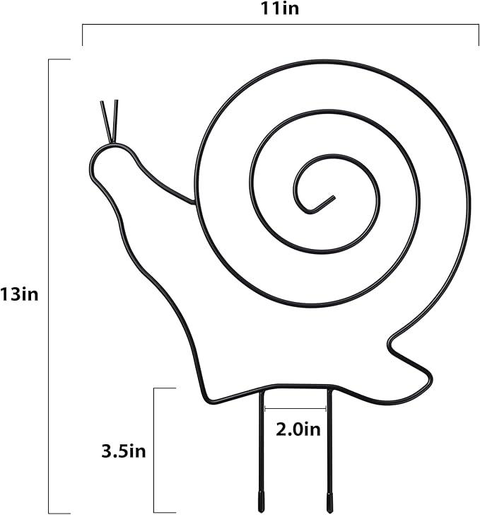 • Small Trellis:Includes 2 Pack of Snails-Shaped Plant Trellises, each measuring 13" high and 11" wide. The 4" ground stake inserts easily into soil, making it perfect for small planters or garden beds. A fun and functional way to support your vining plants while adding a playful touch to your indoor decor.