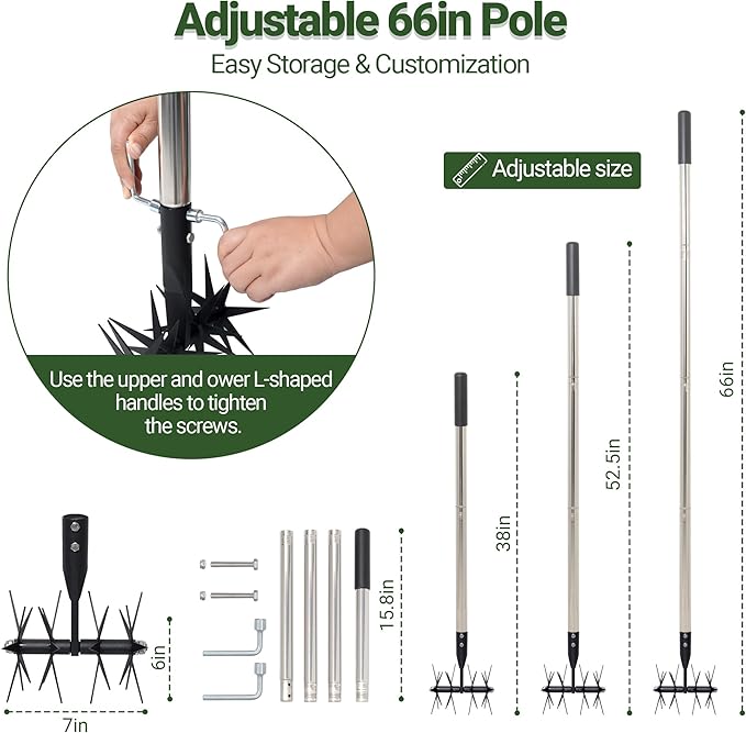 • 66-Inch Adjustable Stainless Steel Handle: The full tool length extends to 66 inches and includes a 4-section detachable stainless steel handle, allowing you to customize the length for comfort or compact storage