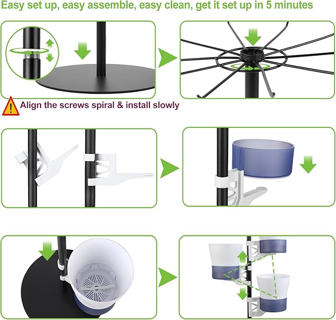 • 🌿HEAVY DUTY, STURDY METAL PEDESTAL STAND: Crafted with a strong, metal base and adjustable trays, this Standing Pedestal Stand supports both CLIMBING and HANGING plants,even bird feeders,offering a flexible indoor outdoor hydroponic growing system garden kit