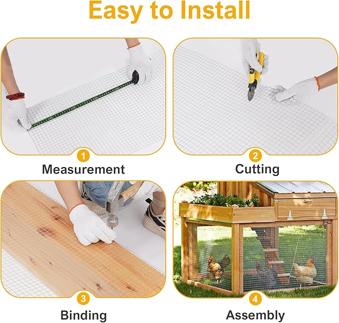 • 【Wide Range of Applications】The flexibility and resilience of wire mesh fencing make it suitable for a wide range of applications. It is suitable for chicken coop, rabbit cage, poultry fences, chicken run wire mesh, vegetable garden, tree guard, raised garden bed guard, home decoration works, handicrafts making, etc.
