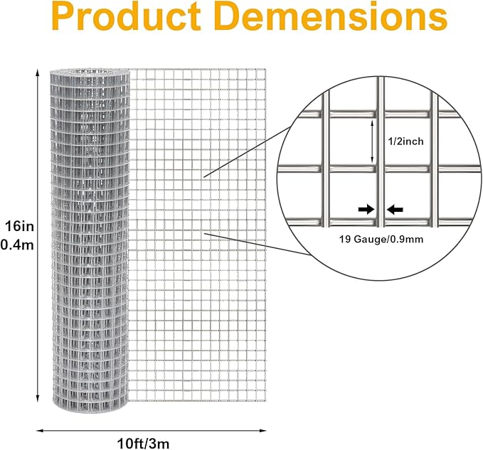 • 【High Quality Material】BIRDSINYARD chicken wire roll is made from 19 gauge low-carbon steel wire for high strength and flexibility. Features waterproof, rust proof, corrosion resistance, tear resistance. It is a ideal choice for making outdoor fences.