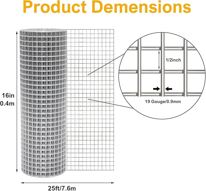 • 【High Quality Material】BIRDSINYARD chicken wire roll is made from 19 gauge low-carbon steel wire for high strength and flexibility. Features waterproof, rust proof, corrosion resistance, tear resistance. It is a ideal choice for making outdoor fences.
