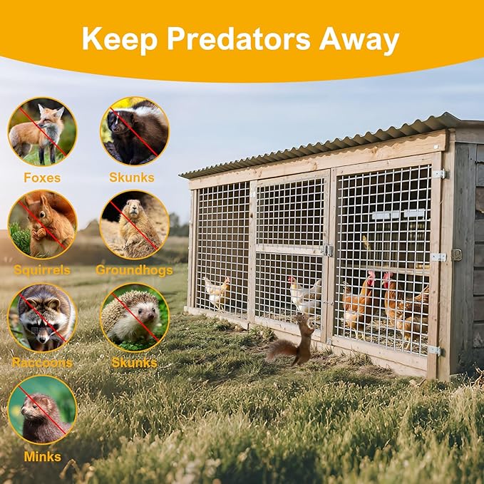 • 【1/2inch Openings】 The chicken wire mesh is 1/2" x 1/2" square openings, which is small enough to keep weasels, rats and most animals out while allowing airflow. Effectively prevent your chickens, ducks, rabbits and other farmed animals and vegetables, tomatoes, strawberries and other fruits and vegetables from being entered by small animals such as snakes, voles, gophers and so on.