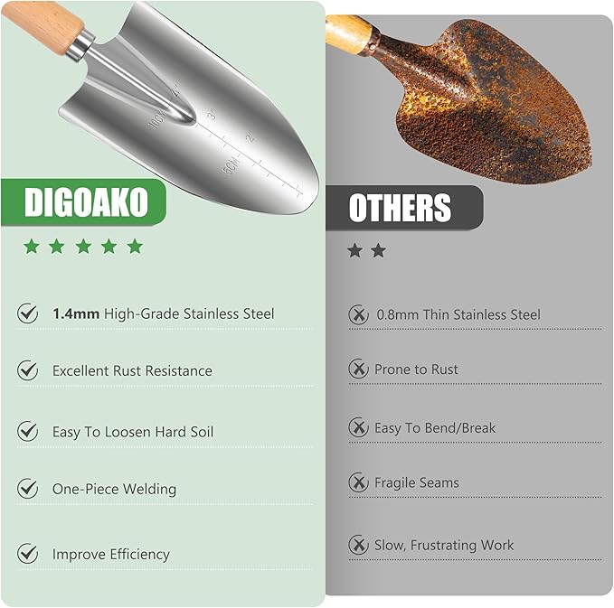 • 🛡️ ​​[Stainless Steel Garden Tool Set]​​ - Crafted with heavy-duty stainless steel, these ​​garden tools​​ resist rust, corrosion, and deformation—ideal for heavy soil, weeds, and year-round use.