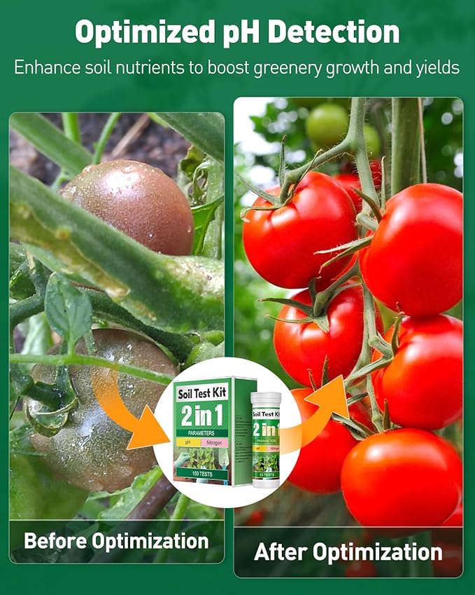 • Regular Test: The soil testing kit contains 150 test strips in total (1 bottle & 2 bags). Ideal for multiple tests or regular soil monitoring. Effectively help you maintain perfect pH balance and optimal nitrogen levels throughout the growing season