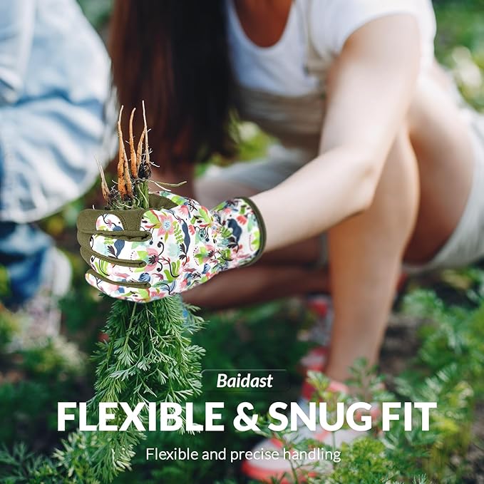 Baidast Gardening Gloves for Women Garden Gloves for Womens Thorn Proof for Women's Gifts Digging Planting Pruning Weeding(Green+White)