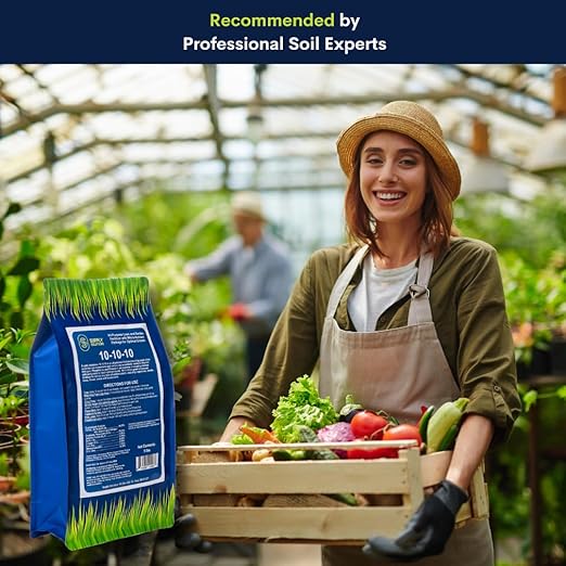 • Balanced 10-10-10 NPK Formula: A 10% nitrogen, 10% phosphorus, and 10% potassium blend ensures steady growth for lawns, gardens, and crops. Nitrogen fuels lush foliage, phosphorus boosts blooms/fruits, and potassium strengthens roots. Ideal for year-round use without nutrient overload.