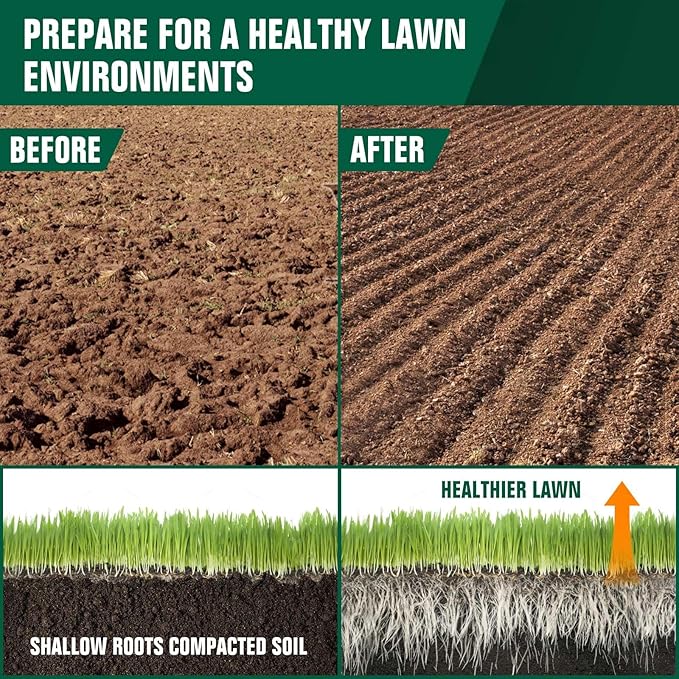 • GROW HEALTHY AND PROSPEROUS GARDEN BY TAKING A FEW STEPS NOW! ----- To prepare and maintain healthy areas of soil for gardening, the rotary cultivator used for many scenarios, like aerating, reseeding grass, or preventing weed growth. Sure it is the effective hand rotary cultivator for every green thumb. Taking a few steps by holding this garden tiller after a meal or treat as a morning exercise to activate muscles. A healthy life and a beautiful garden begins from your each steps.