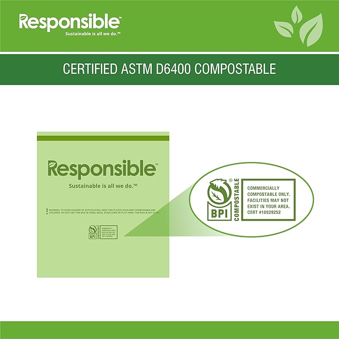 • ❤ Certified Compostable: BPI-certified compostable trash bags made from renewable plant materials—not traditional plastic. Breaks down in 90 days at commercial compost facilities. 100% eco-friendly!