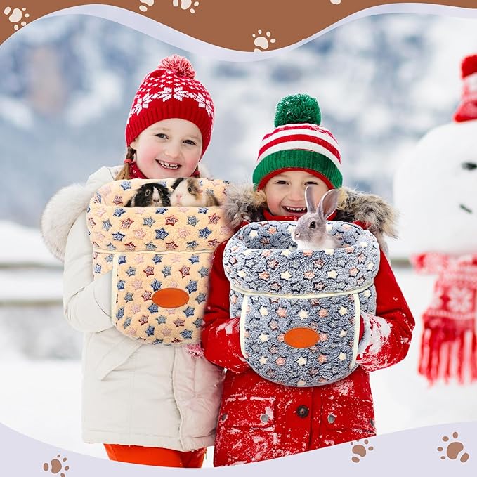 Wenqik 2 Pcs Guinea Pig Hideouts Washable Bunny Bedding Cuddle Warm Small Pet Sack Supplies Portable Pet Carrier Cage Nest Guinea Pig Accessories for Cage(Blue, Khaki,Star)