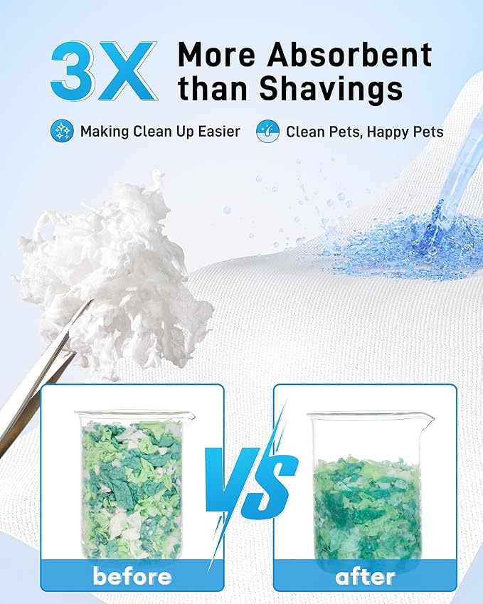 No Odor Zero Additive - Without any chemical additive, it keeps your pet's habitat smelling fresh and clean for up to 10 days with a natural smell. It's 3x more absorbent, locking away odors and giving you more time to snuggle with your pets instead of cleaning.